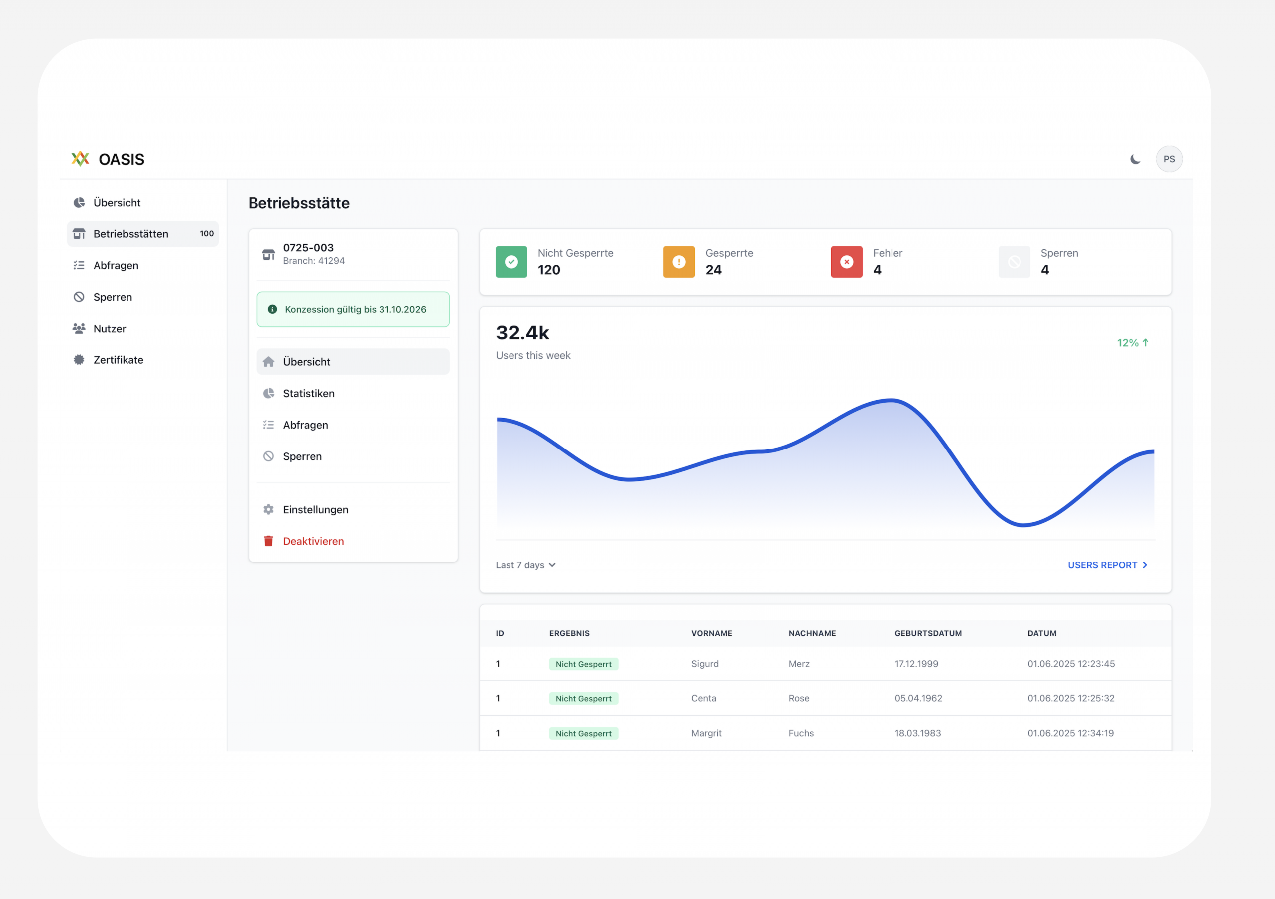 Die BEYOND OASIS-Lösung verbindet Retail- und Onlinekanäle in einem zentralen System. Spielersperren werden in Echtzeit geprüft und überwacht. Über benutzerdefinierte Alerts und ein intuitives Monitoring-Tool behalten Sie jederzeit die Kontrolle über alle relevanten Vorgänge.